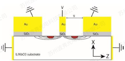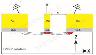 对于铌酸锂调制器,通常可以采取两种切向的基底。Z切向(电场施加方向),这种调制器通常表征为较低的插入损耗和半波电压V,它的电-光转化的有效性更高。然而,热释电效果很强,导致调制器漂移(调制器传输曲线不稳定),而且一些Z切向的调制器当测试环境变化时(例如温度)非常难以控制。X切向(光波导相对电波导结构对称)提供略微低于Z切向的电光转换效率(稍高的Vpi和插入损耗)。然而,X切向的调制器稳定性更好,漂移被很大的限制,热释电效应非常弱。也就是说,X切向允许得到比Z切向更稳定的性能。