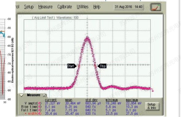 除了调制器,iXblue还提供高频信号放大器(调制器驱动)和控制系统(Modulator Bias controler,调制器偏压控制-MBC).这个产品对于客户的应用做最大的优化:优化消光比的稳定性,超短上升沿的脉冲。
