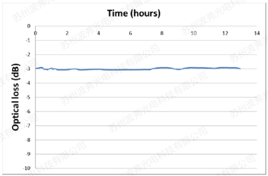 Figure 3 :使用退火质子交换工艺的NIR-MX800-LN调制器插入损耗随时间的稳定性变化