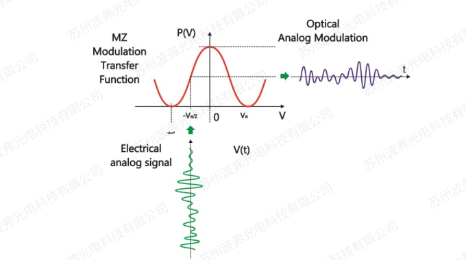 模拟电子信号 < Vp峰间电压作用于调制器上,重现输出光信号