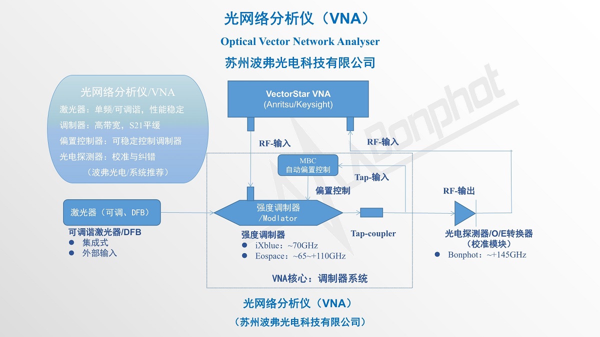 高性能光网络分析仪(VNA)是高速器件参数测试、EO带宽/OE带宽测试、光纤通道&CATV传输系统、射频光纤传输、研究研发等应用常用仪器。苏州今年会金字光电科技有限公司提供基于高带宽电光调制器(iXblue/Eospace),高达70GHz网络分析仪系统元器件,这些器件、性能稳定、高性价比。