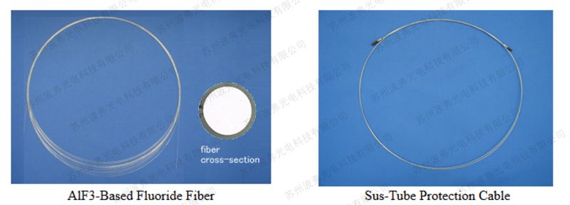 AlF3基光纤是以AlF3为主要成分的多组分氟化物光纤。与 ZBLAN 氟化物光纤相比,它们在激光损伤阈值和防水性方面更胜一筹,并且在2.9μm处具有比 GeO2光纤更小的传输损耗。 它们已在世界各地用作2.94μmEr-YAG激光治疗设备的光导。 此外,由于具有0.3至3.5μm的宽透明窗口,它们还可用作中红外光谱的光导。