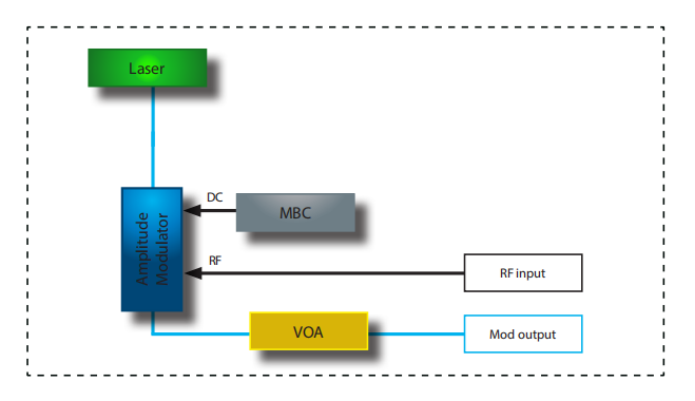 • 调制器偏置控制器:内部LiNbo3调制器是具有非常低漂移的X-切设计器件。然而,无论环境条件如何,都提供了一个自动偏置控制电路来将调制器的工作点锁定在正交点。MBC确保了随时间的稳定操作,并显示出非常低的噪声灵敏度,从而显著降低了所需的抖动电压幅度。