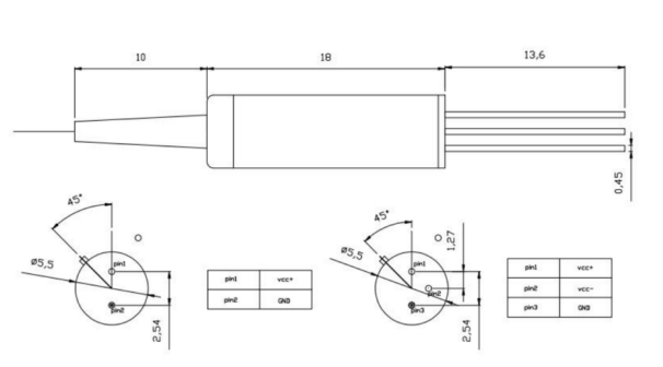 标准封装:Ф5.6XL18 ;紧凑型封装:Ф3.5XL16